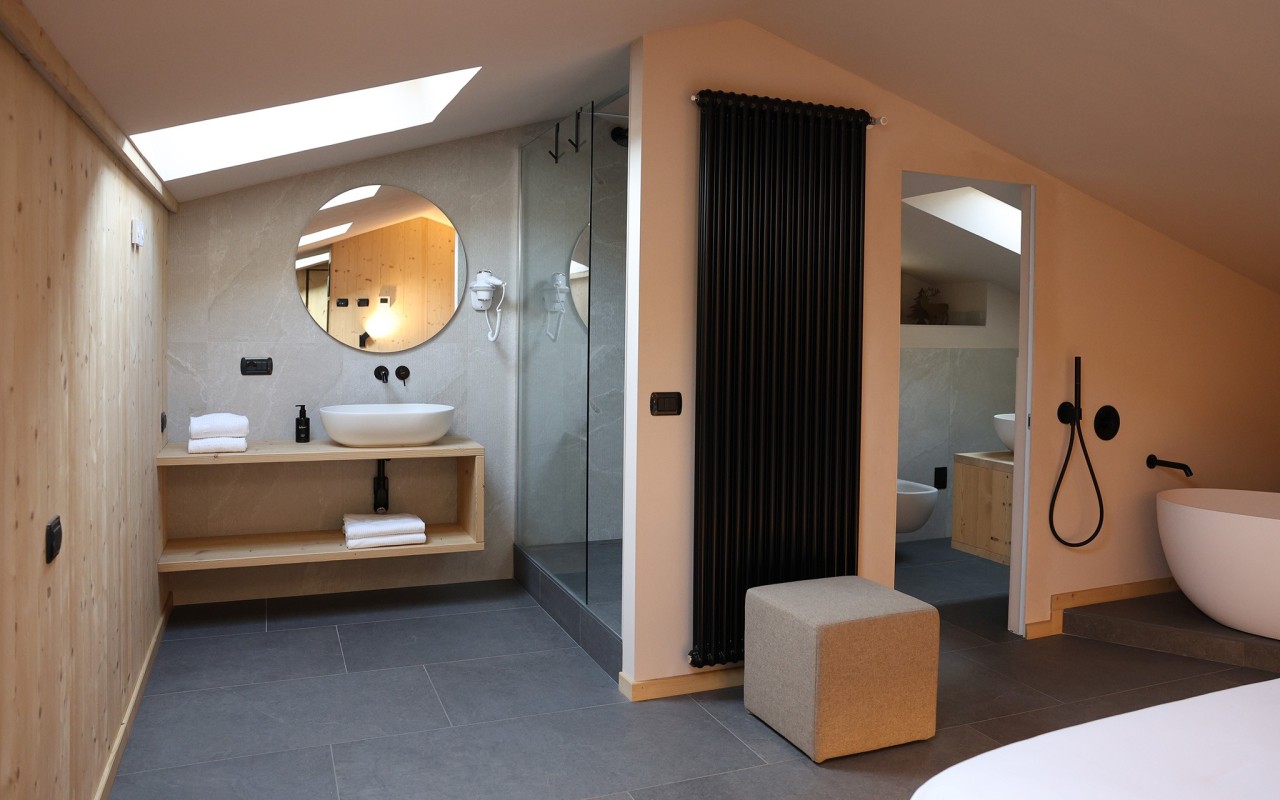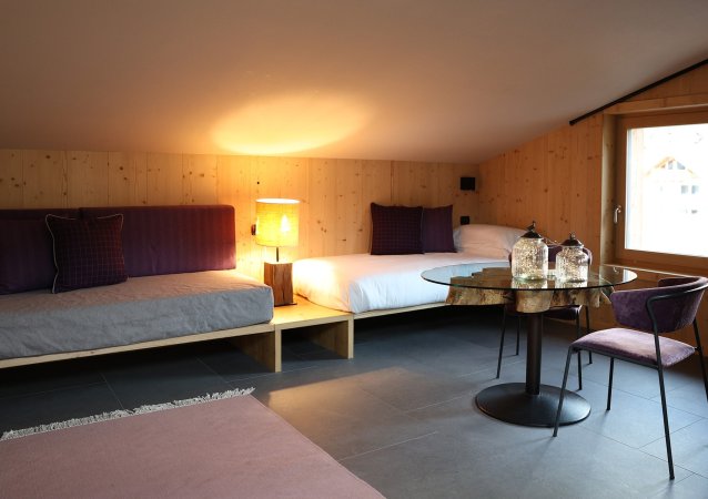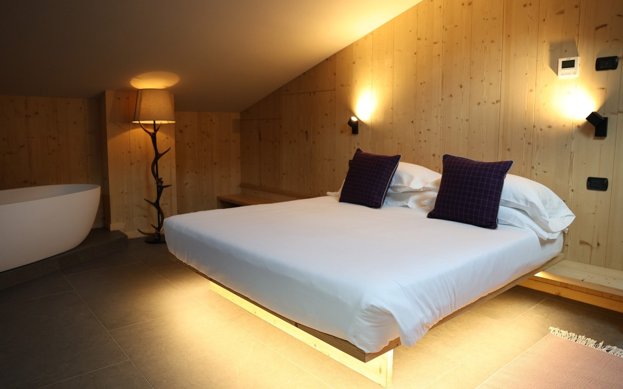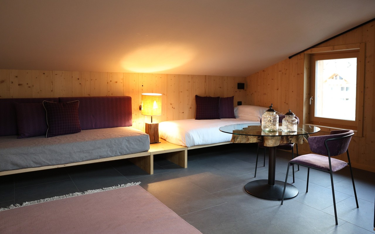 La camera ha luminosi abbaini da dove è possibile ammirare le vette delle bellissime montagne innevate durante la stagione invernale e un panorama da sogno durante la stagione estiva.
