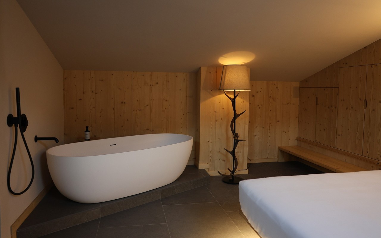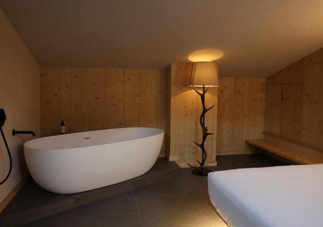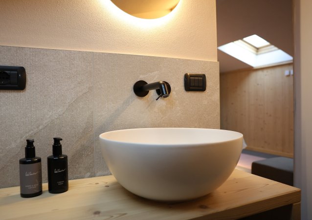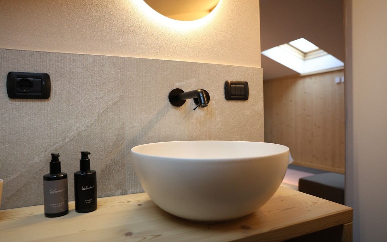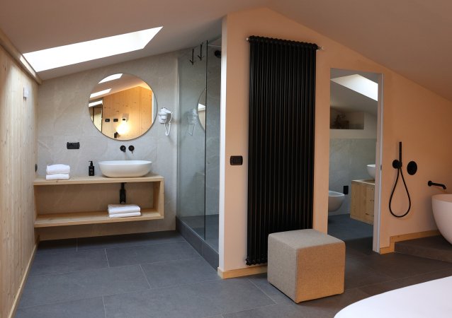La camera ha luminosi abbaini da dove è possibile ammirare le vette delle bellissime montagne innevate durante la stagione invernale e un panorama da sogno durante la stagione estiva.